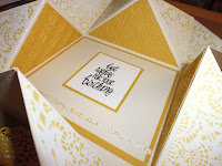 Foundation card in white, cream, teal and mustard, Graphic 45 Botanical Tea Collection / Birds of a feather card, The Sweetest Thing card by Jen Allyson, 15 mm organza white ribbon, and adhesive.